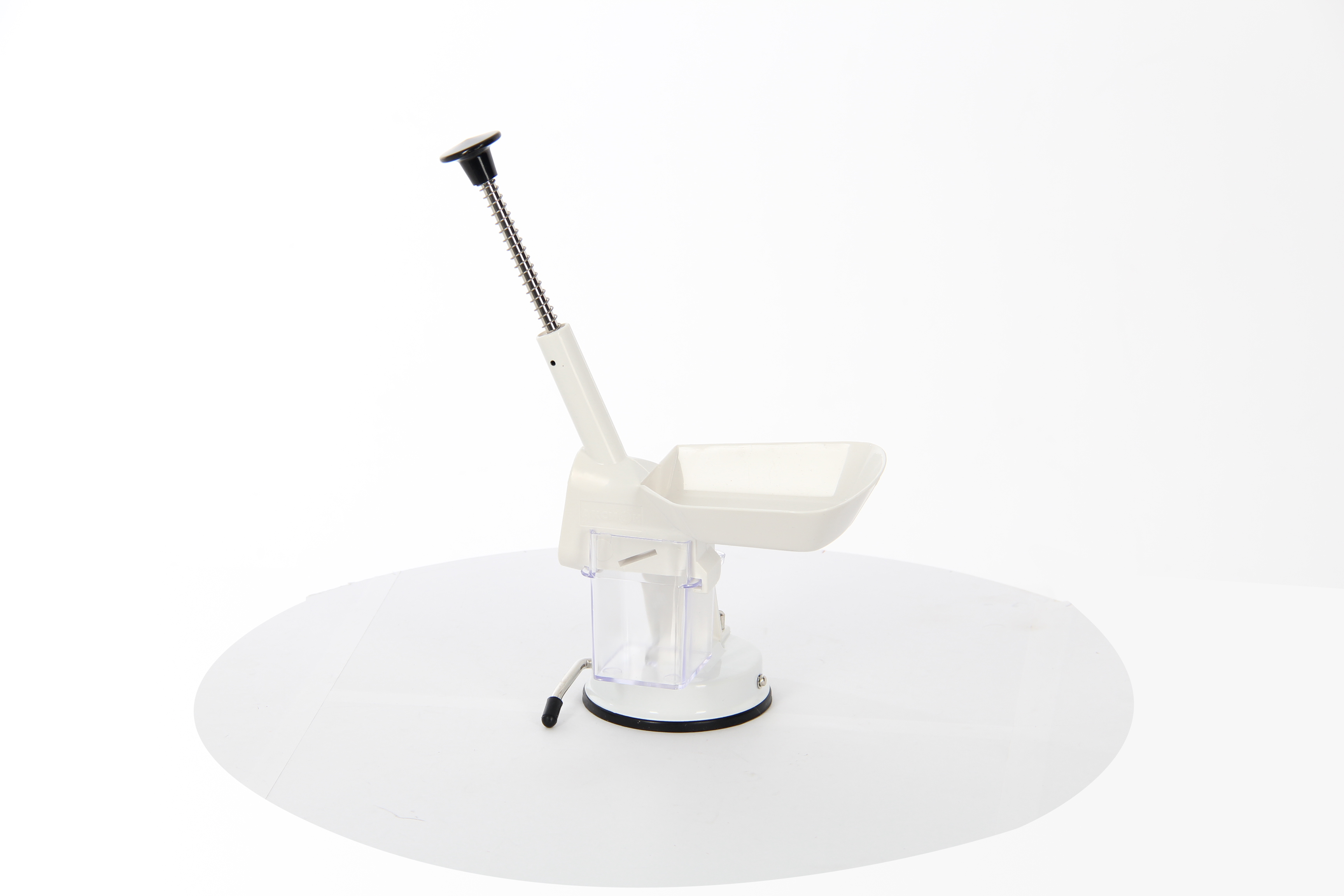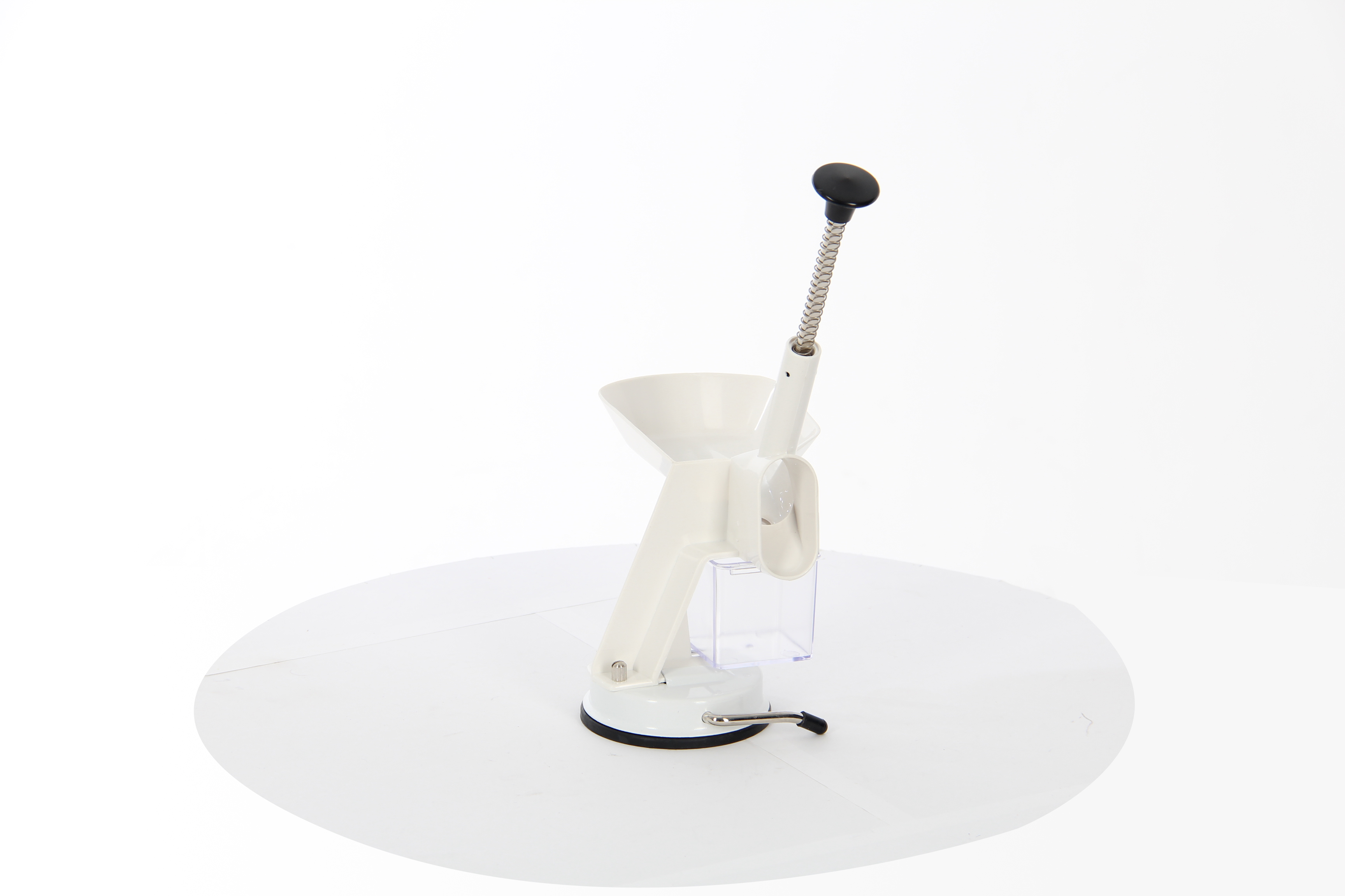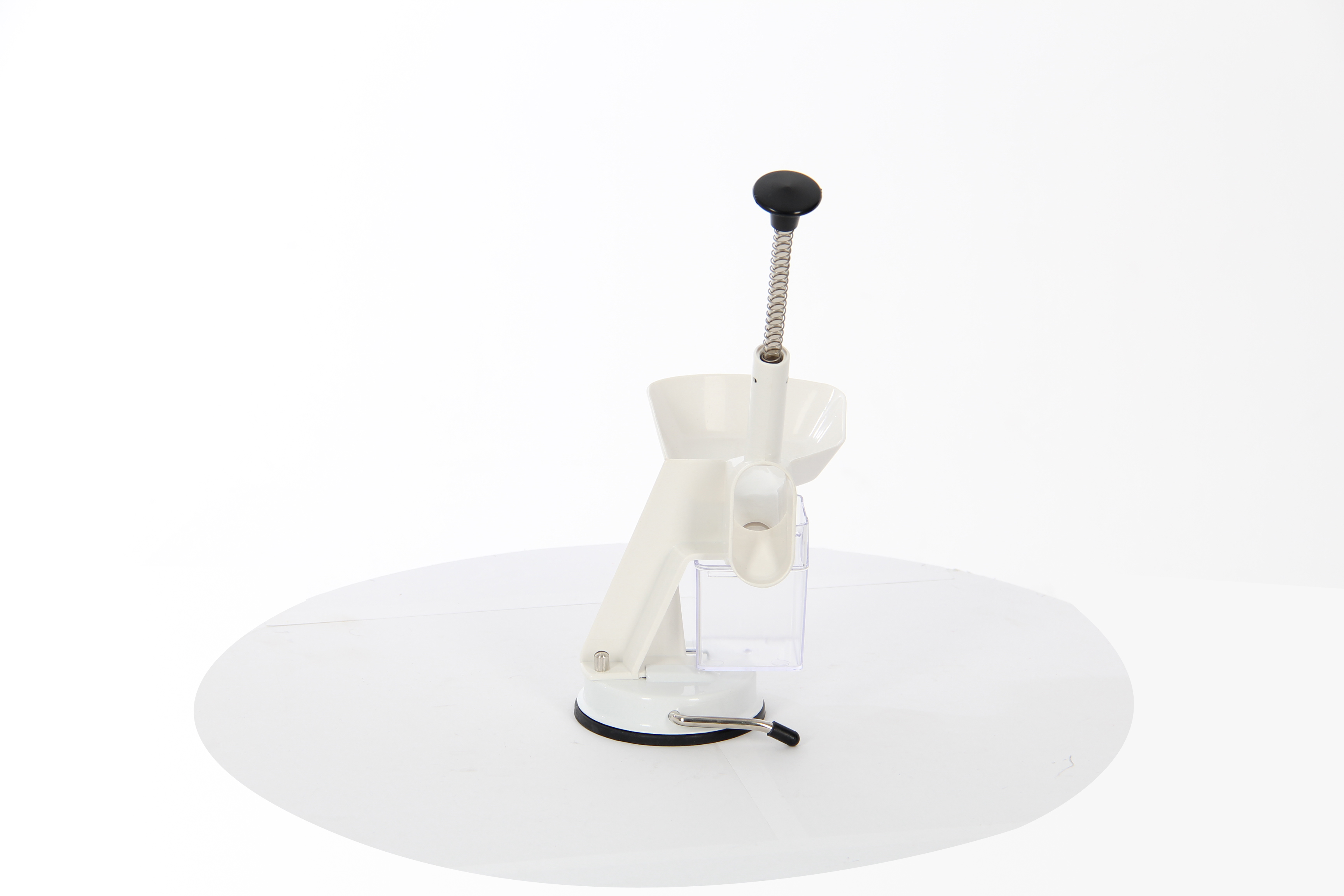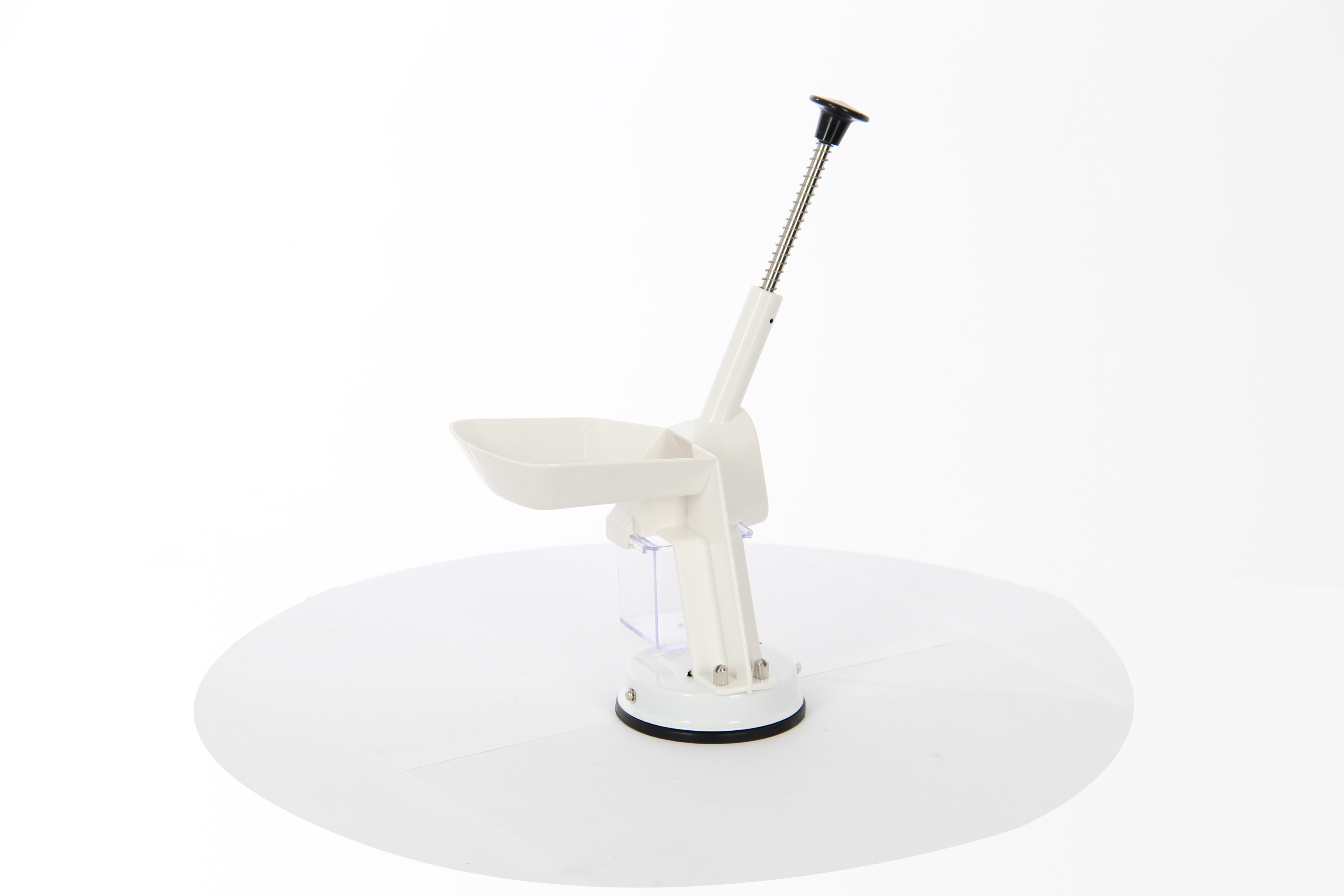 - Специальная ручка и противоскользящая резиновая присоска надежно фиксируют прибор на поверхности стола