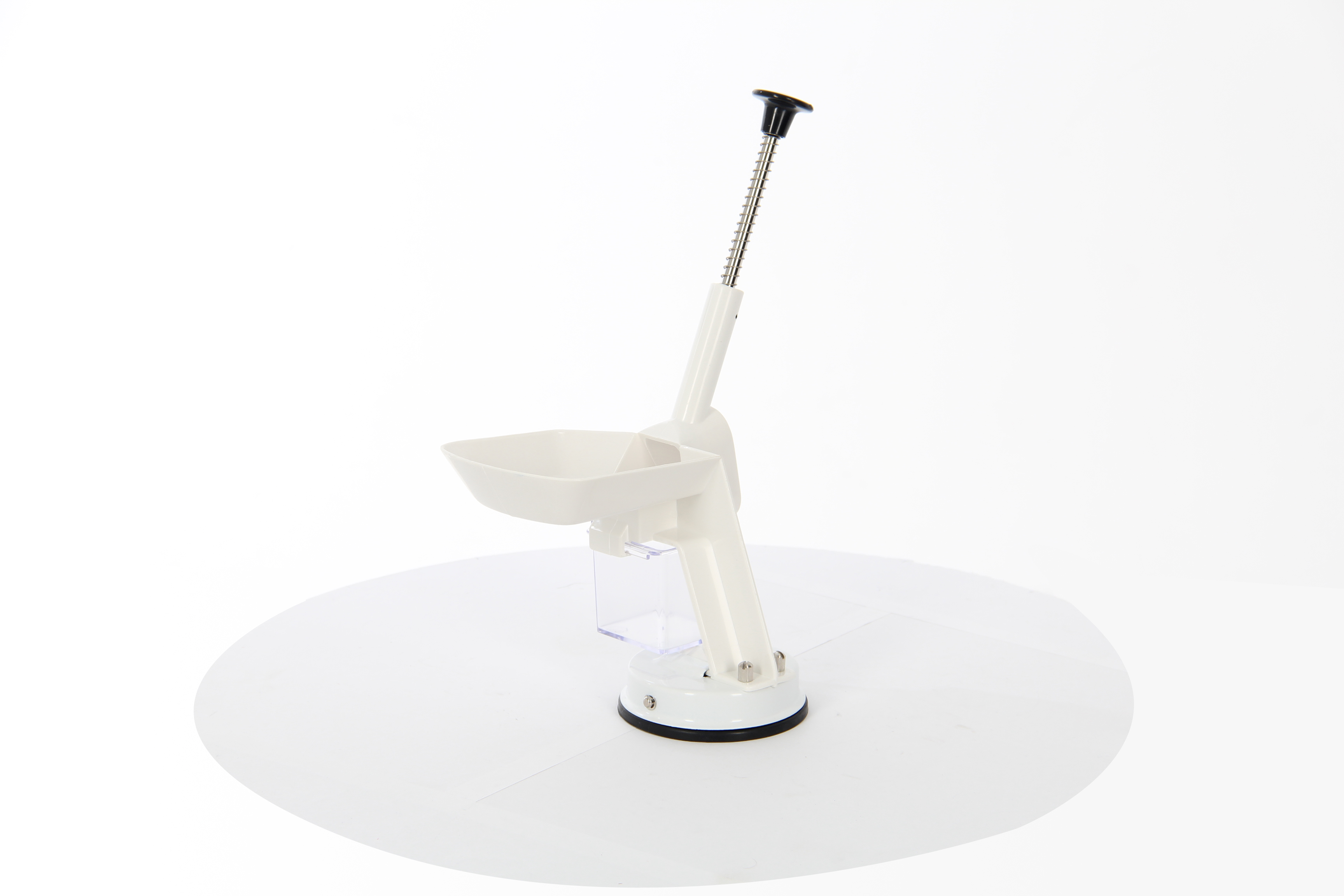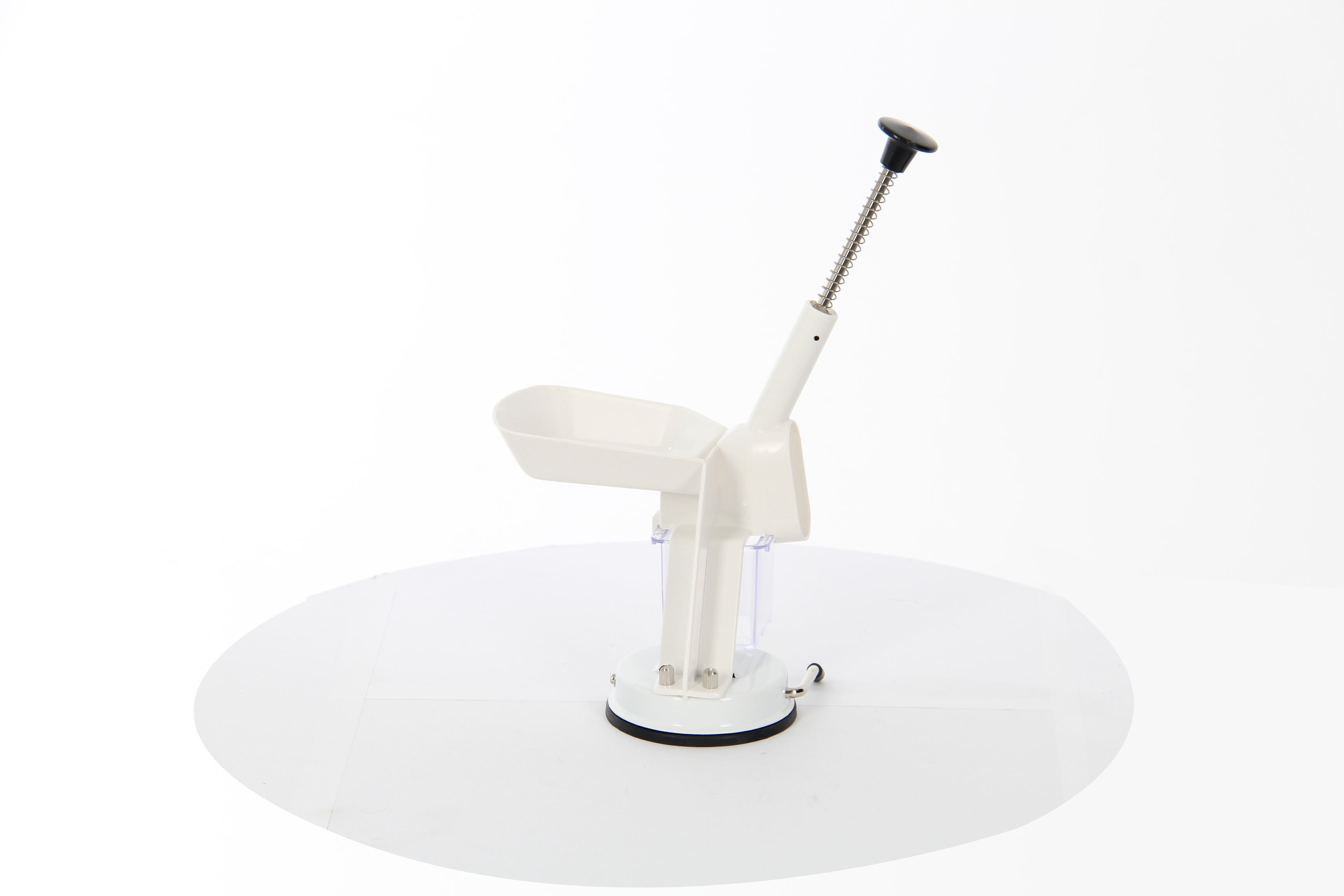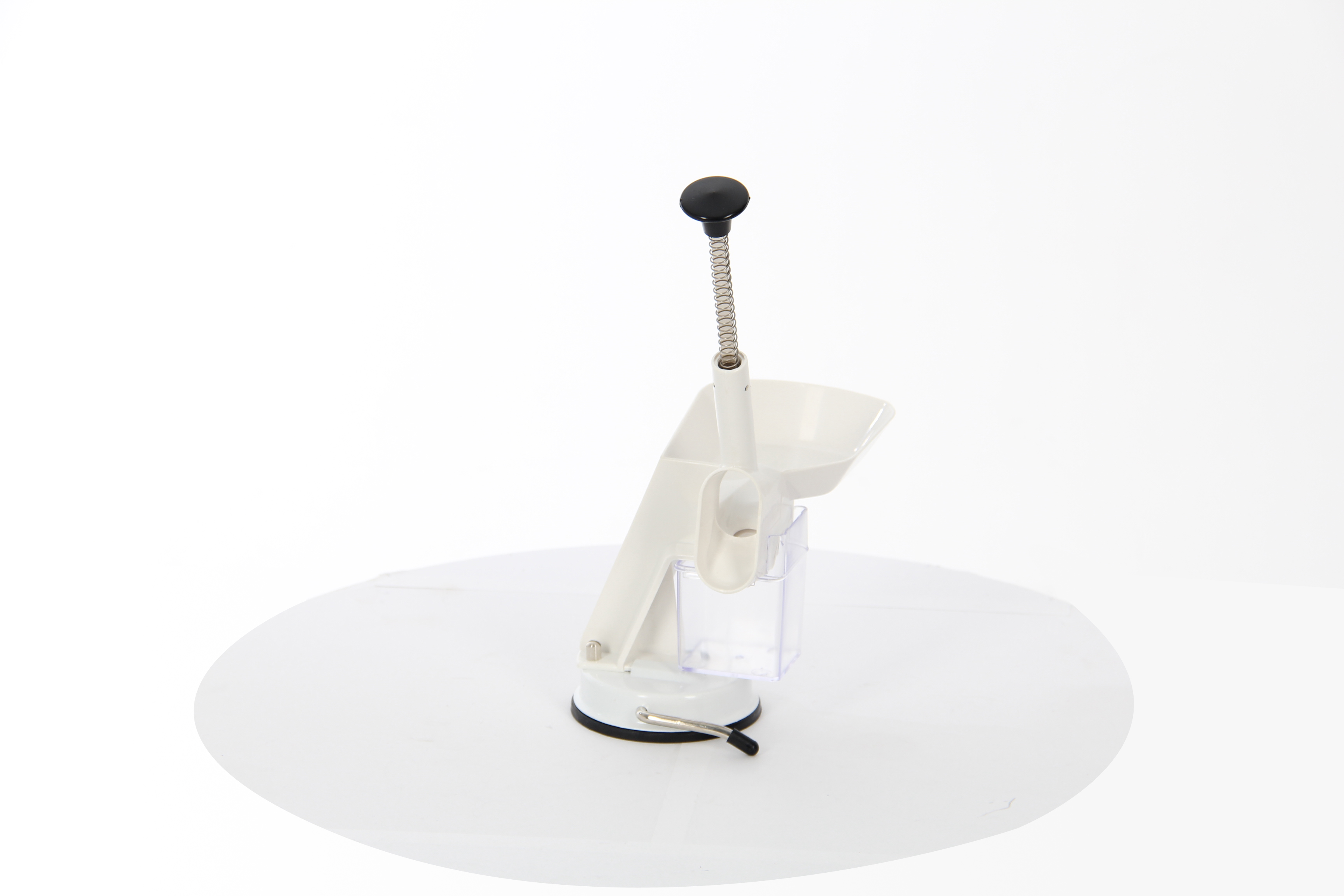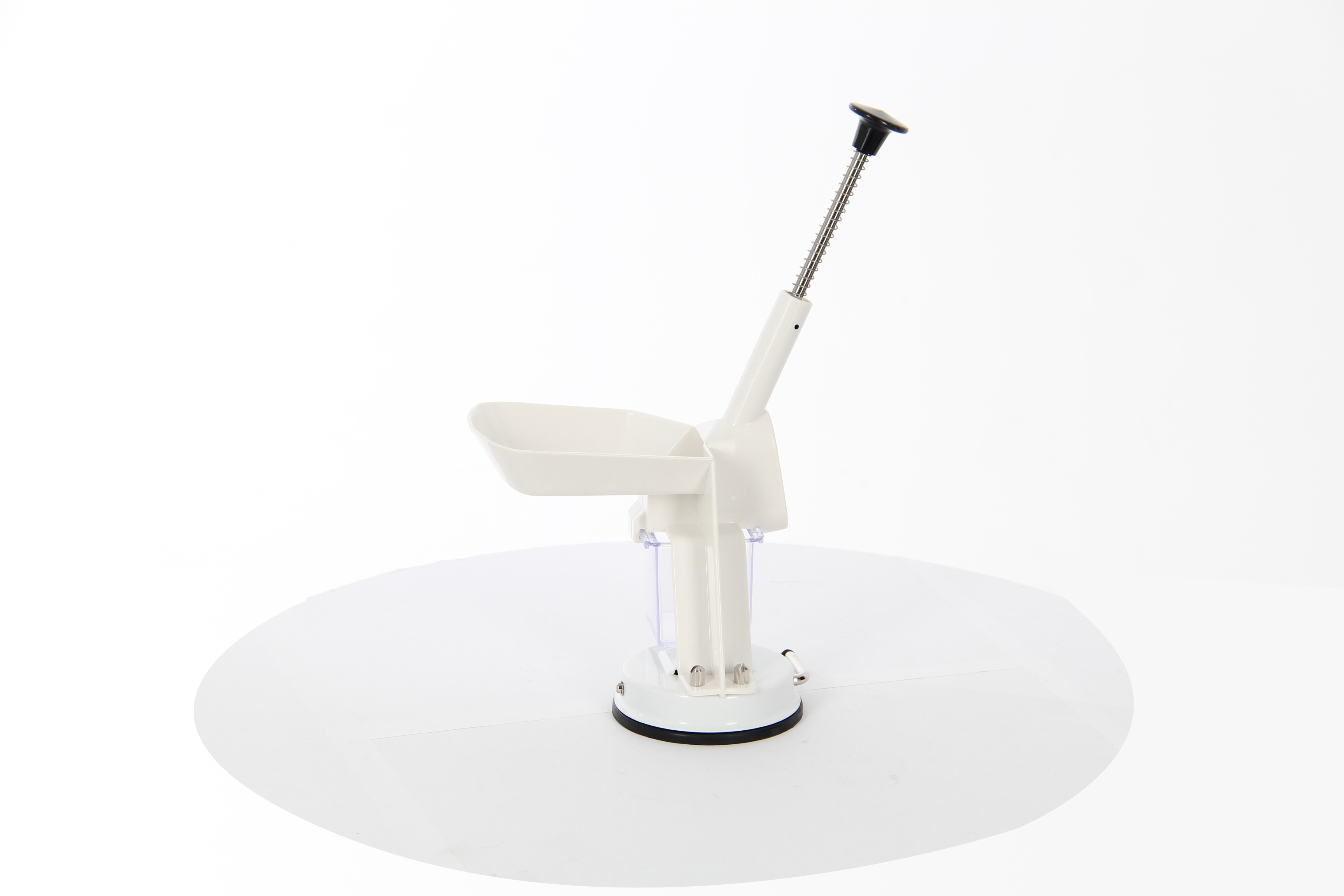 - Специальная ручка и противоскользящая резиновая присоска надежно фиксируют прибор на поверхности стола
