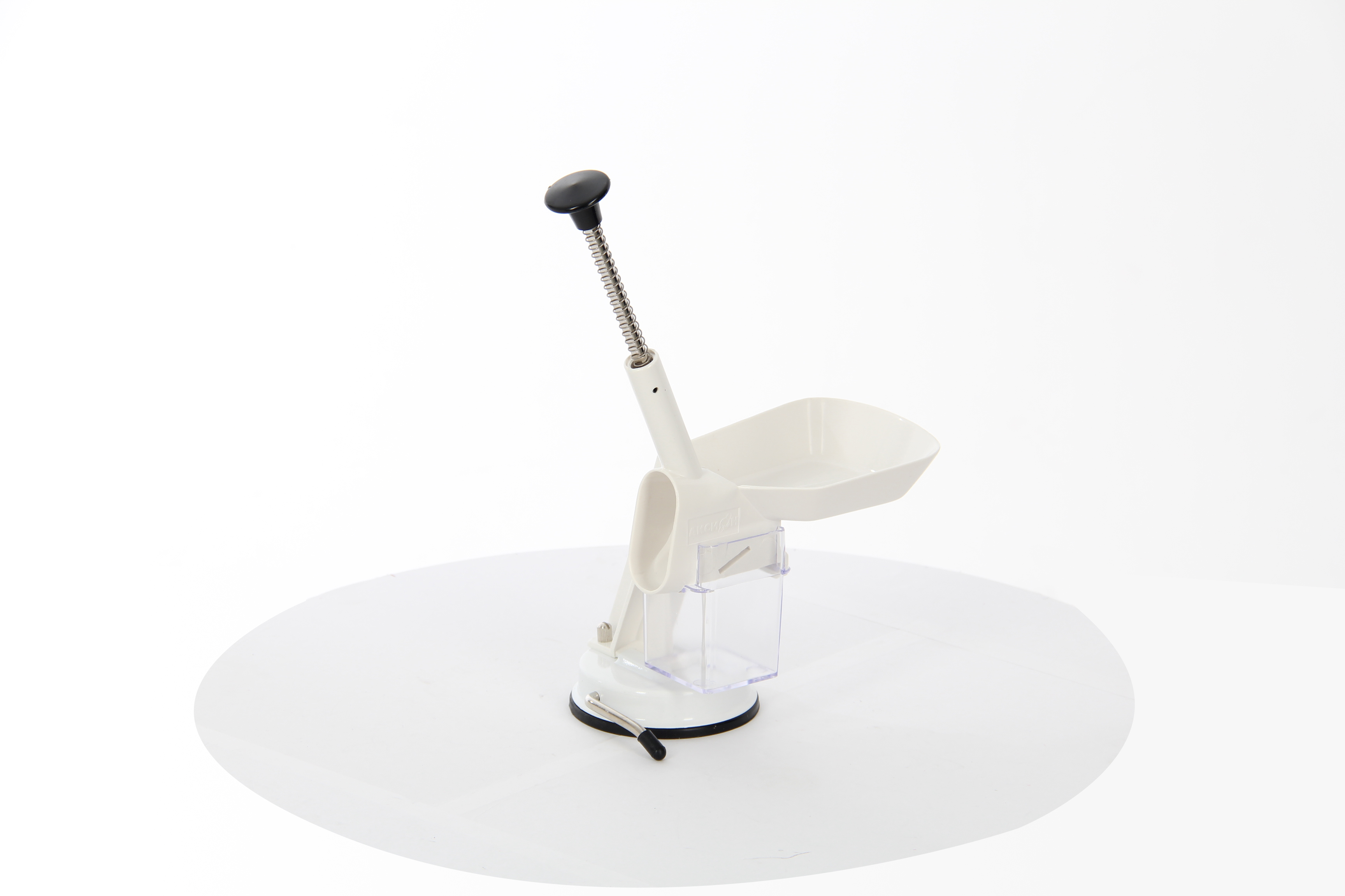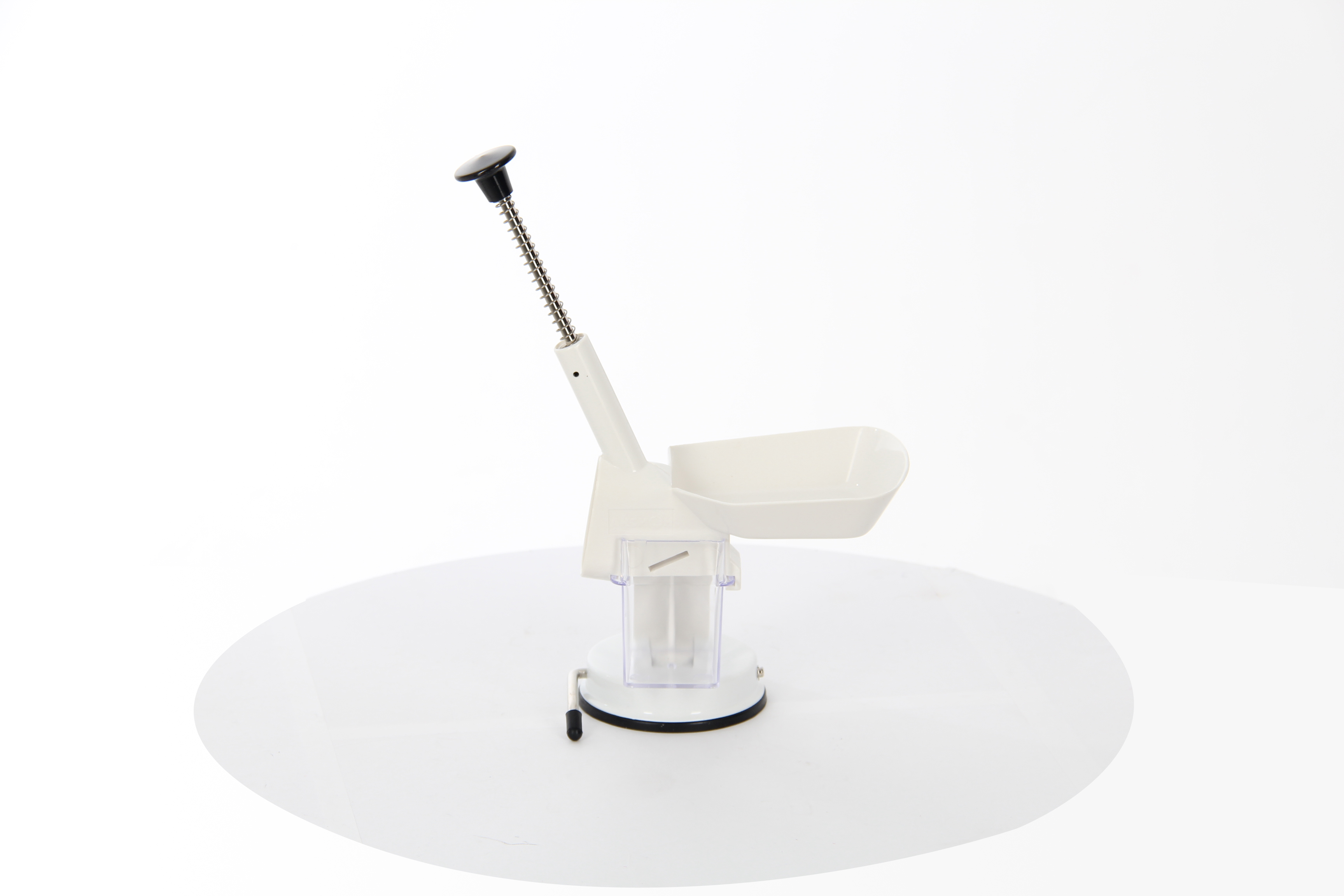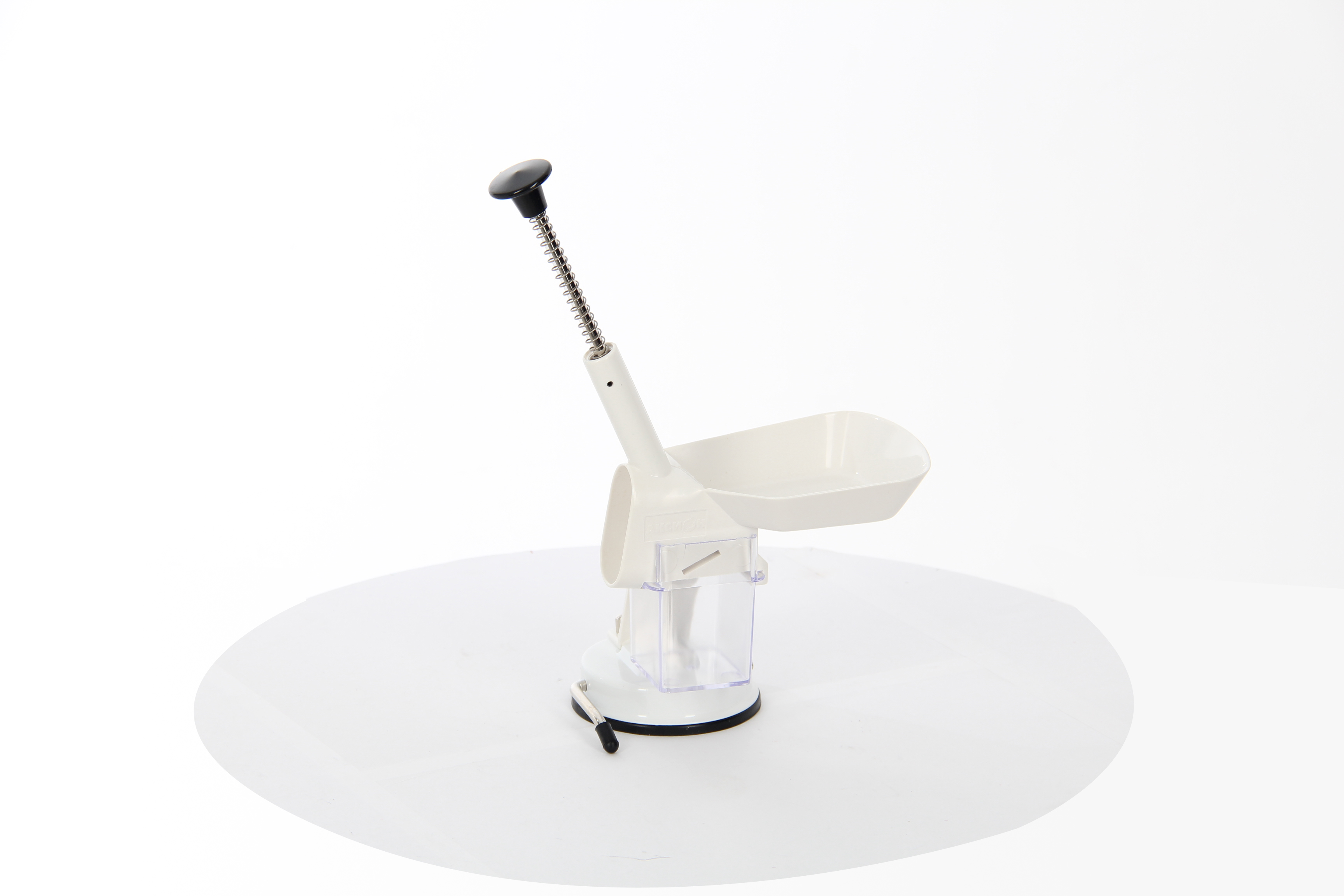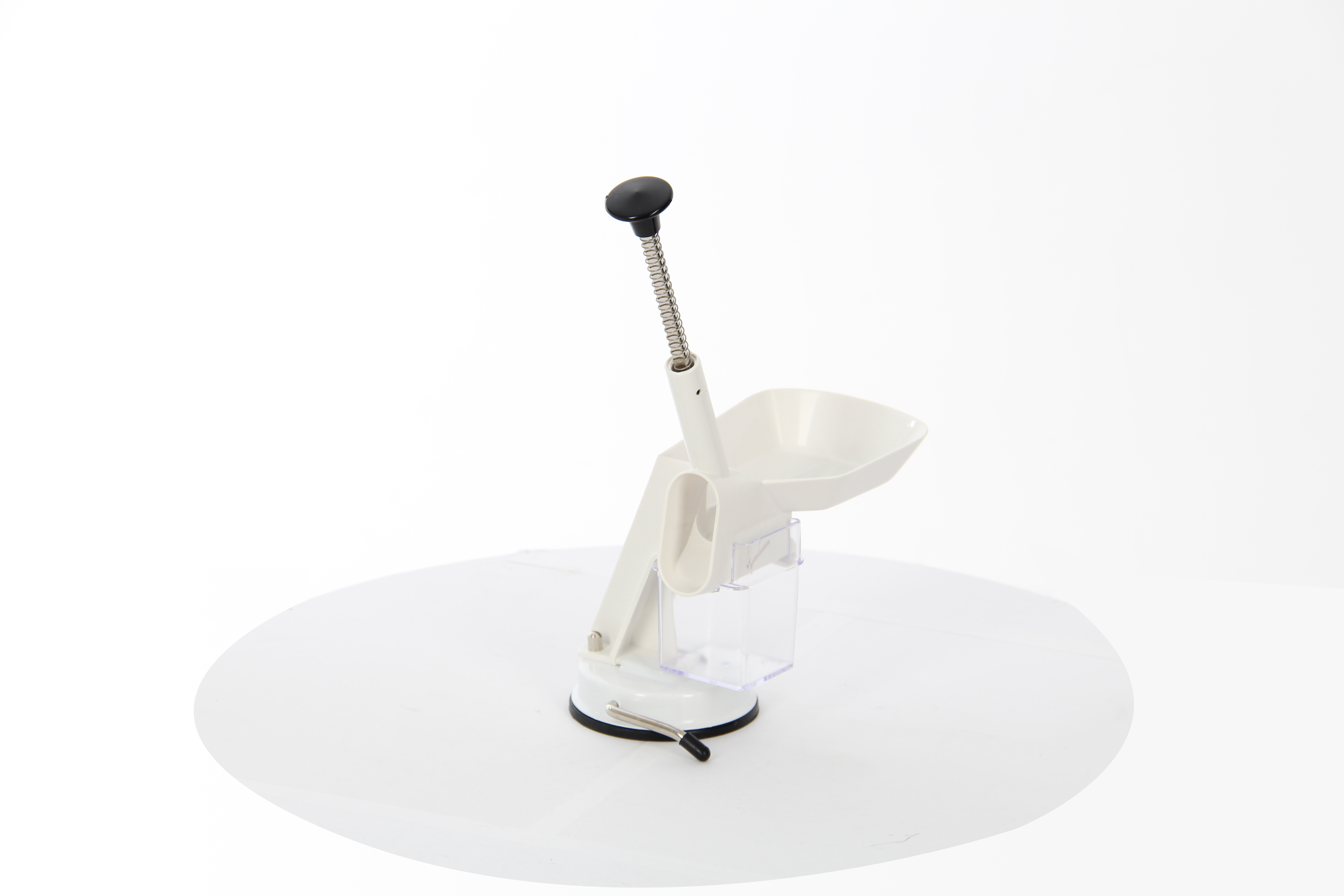- Специальная ручка и противоскользящая резиновая присоска надежно фиксируют прибор на поверхности стола