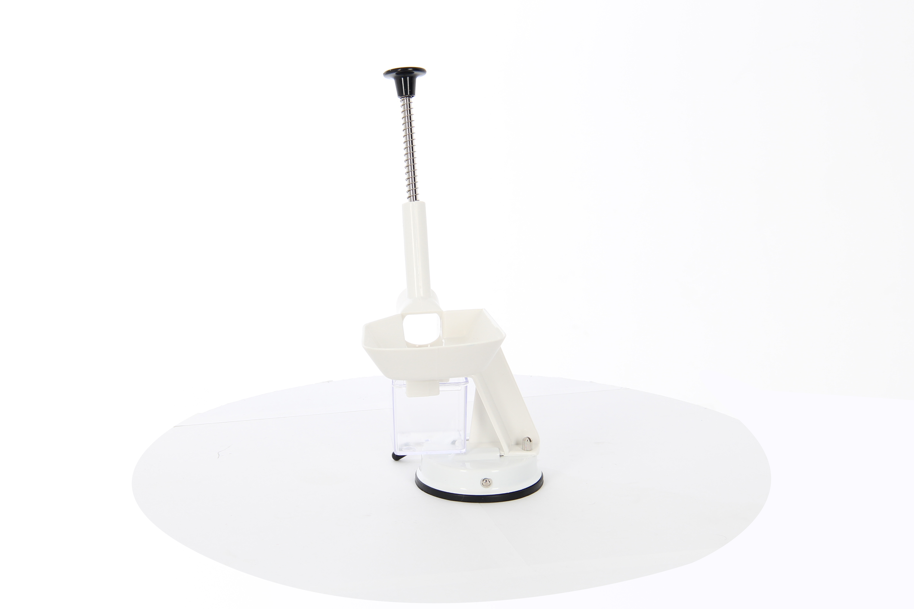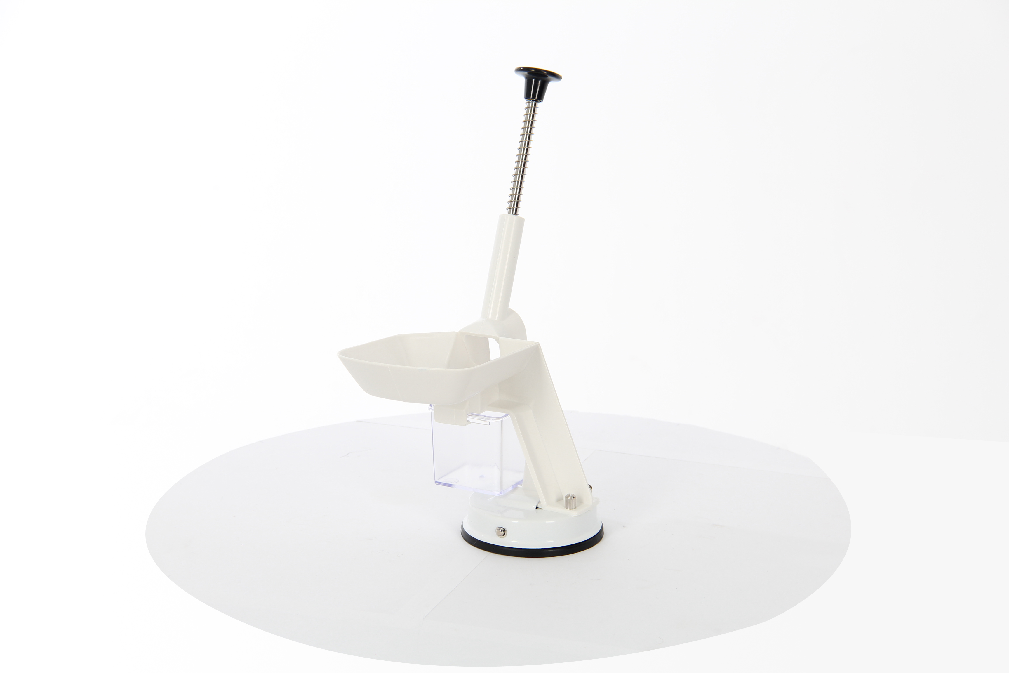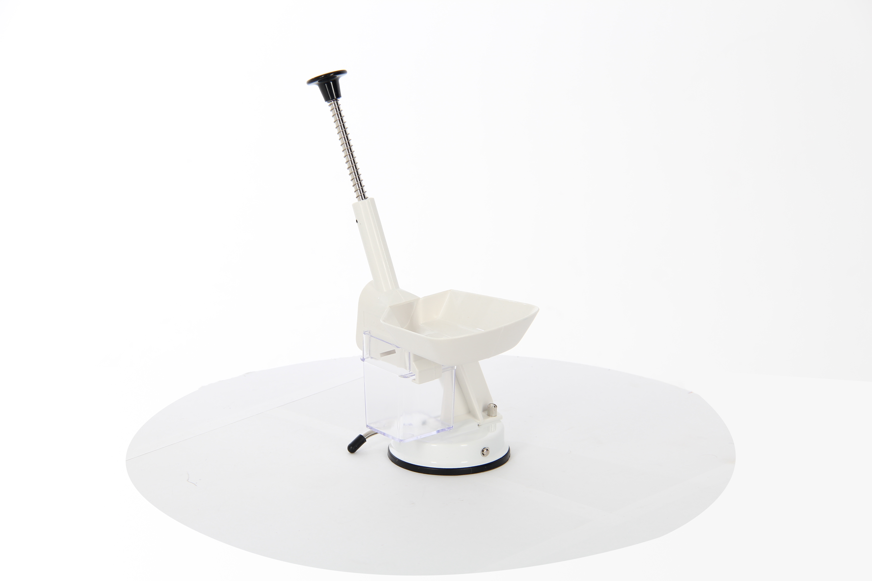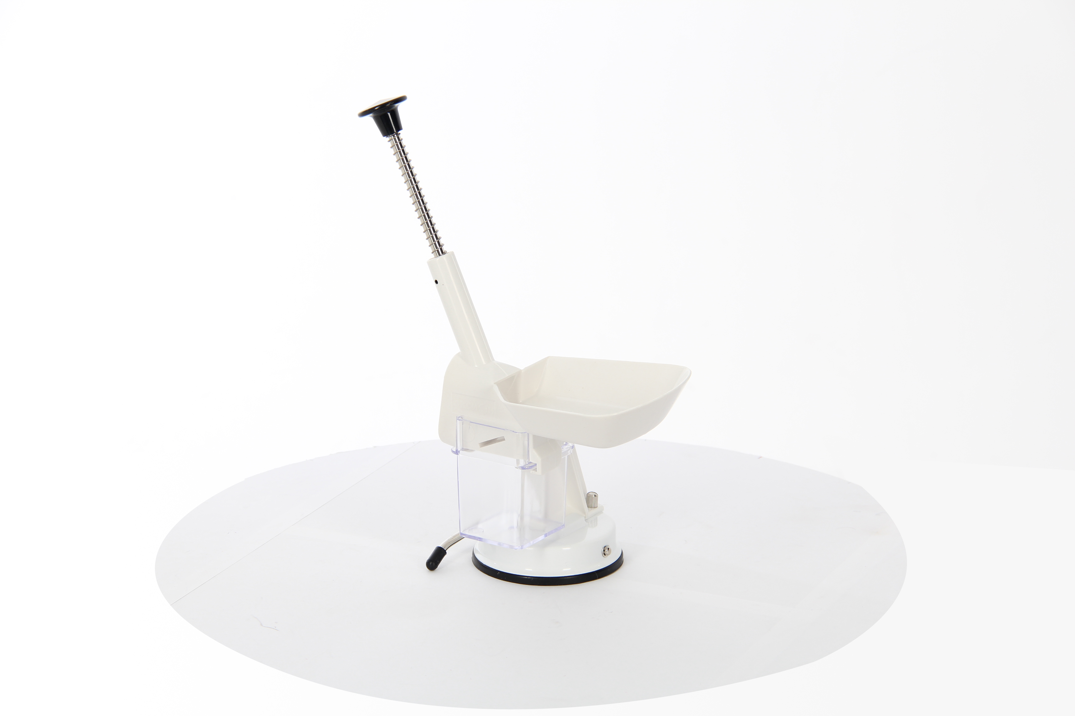 - Специальная ручка и противоскользящая резиновая присоска надежно фиксируют прибор на поверхности стола